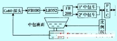 在液位控制儀中轉換成標準信號后送到plc和上位機的過程中,考慮到意外情況下不能關閉中包塞棒,增加了一套信號傳輸通道fb200,一旦一路發生中斷,可在不到3s的時間內投運另一路。plc和上位機在完成監控功能的同時輸出信號到液壓比例閥,在plc輸出信號一定的前提下,重點研究了比例調節閥內放大旋鈕的配合,掌握了放大和振幅之間的線性關系,可實現中包塞棒液壓缸的振幅調節,進而實現結晶器液面的調節,達到液面檢測和調節的閉環控制,最終實現整個l1級的閉環控制,如圖2所示。