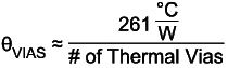 所需的PCB板面積近似值未考慮到散熱孔所發揮的作用,這些散熱孔將熱量從頂部金屬層(封裝連接至PCB)向底部金屬層傳遞。底層用作第二表面層,對流可以從這里將板上的熱量傳送出去。為了使板面積近似值有效,需使用至少8~10個散熱孔。散熱孔的熱阻近似于下列方程式值。