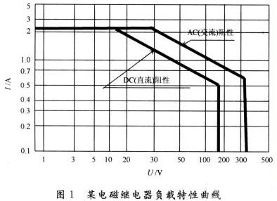 (2)不同電磁繼電器具有不同的負載曲線即負載電壓和負載電流的關系曲線,如圖1是某電磁繼電器負載曲線(最大切換能力)。