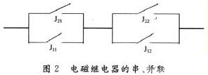 理論上電磁繼電器觸點可以并聯,也可以串聯。觸點并聯可以提高電路接通的可靠性,對電路斷開的可靠性則相反;觸點串聯可以提高電路斷開的可靠性,對電路接通的可靠性則相反。這是由于電磁繼電器各組觸點間不可能完全同時動作,故一般不采用兩組或多組觸點并聯起來切換一個大于單個觸點額定負載電流的電路;同時也不采用兩組或多組觸點串聯起來去切換一個大于單個觸點額定負載電壓的電路。目前多數采用將兩個(或以上)同類型,兩組觸點串、并聯使用來提高其可靠性,其并聯可靠度為: