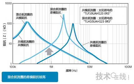 這種情況下,同時擁有共模扼流圈和差模扼流圈兩種功能的“混合扼流圈”最為有效。
