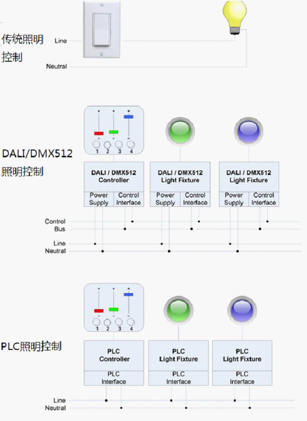 PLC也常應用于照明控制。在傳統照明應用中,。傳統照明架構允許獨立地控制某個燈,而建立在總線拓撲上的標準支持獨立地控制多個燈;雖然DALI和DMX512可以從一個控制器獨立地控制多個燈,但DALI和DMX512都要求安裝額外的控制線。