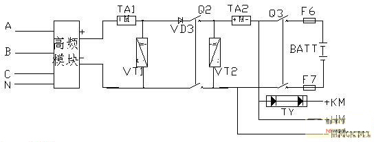 ⑴ 由于高頻模塊具有良好的輸入過欠壓和輸出過欠壓保護,而且具有良好的限流功能,因此,在輸入側和輸出側不需另加熔斷器保護。由于高頻模塊本身具有電壓電流顯示功能,而且監控器也可以顯示系統中的其他參數,因此,在高頻系統中,相控系統中常用的表記也可以省略。