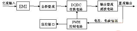 ⑷ 高頻模塊的內部原理框圖如圖4所示。單個高頻模塊本身就是一個完整的直流系統。模塊輸出精度高,穩壓精度、穩流精度、紋波系數都能達到0.5%以下。而且,轉換效率高。高頻模塊內部采用高頻變壓器,體積非常小巧,省去了相控系統中笨重的隔離變壓器。