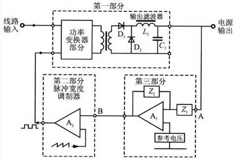 如圖l所示為開關(guān)電源控制方框示意圖,開關(guān)電源控制環(huán)路由以下3部分構(gòu)成。