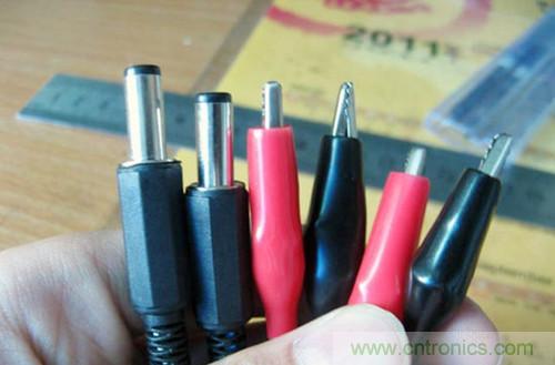 截取50CM的花皮排線,焊接好DC插頭。注意先把后面那個(gè)黑色塑料的外殼套在線上。
