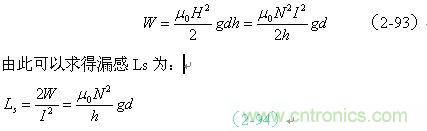 如果我們拿(2-94)式與(2-62)式或(2-89)式進行對比,可以看出,線圈漏感與線圈的電感是沒有本質區別的,只是磁路和磁感應強度以及介質導磁率等參數需要根據實際情況來決定。