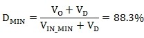 取VO=5V,IO=2A,VD=0.3V, Rdson=50m?, DCR=70m?, 可以得到該情況下,輸入電壓最低可為: