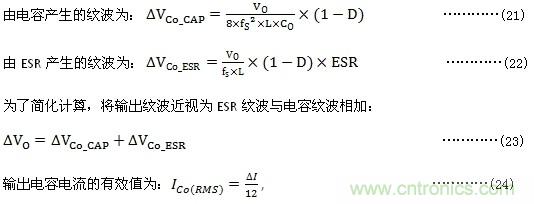 輸出電容紋波主要由兩部分組成,一部分為電容ESR產生的紋波,另一部分為電容產生的紋波。
