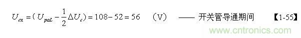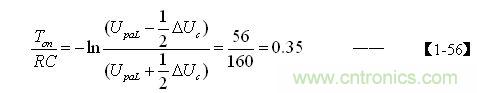 當考慮電阻R對電容器C充電的分流作用,以及開關管由導通到完全關斷期間,漏極電流對電容器C充電的分流作用時,根據【1-36】式,假設分流系數r = 0.5 ,則【1-52】式還可改寫為:
