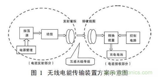 將直流電轉換成高頻交流電,然后通過沒有任何有有線連接的原、副線圈之間的互感耦合實現電能的無線饋送。基本方案如圖1所示。