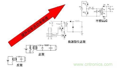 圖2. 隨著功率及功率密度的提升,半橋LLC拓撲成為LED路燈驅(qū)動理想選擇