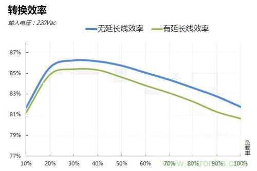 首先我們隨機選擇了一款電源,在沒有使用延長線的時候,分別測試電源的轉換效率、電壓偏離,然后接上延長線,同時測試數據進行對比。