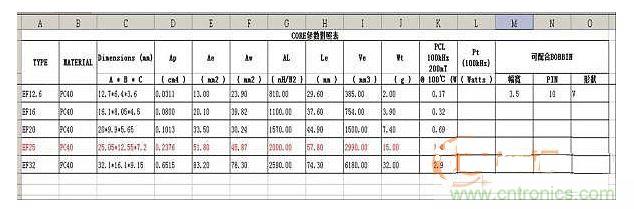 本方案中,磁芯選擇常見(jiàn)的EF25磁芯,為了獲得較低的磁芯溫升,盡量把BAC控制在1000-2000GS之間。