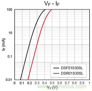 圖5:東芝肖特基二極管DSF01S30SL和DSR01S30SL的特性曲線
