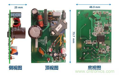 由于光耦的性能會隨著時間下降,所以采用InnoSwitch-EP IC而無需光耦的電源可靠性會得到加強,同時電路所需的元器件數(shù)量也大大減少。以一個20W的電路設(shè)計為例,整個方案不到50個元器件,且不需要散熱片,這使得最終產(chǎn)品的外形尺寸也可以更為小巧。(見圖5)