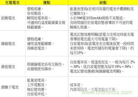 由表1優(yōu)缺點看來,鎳鎘、鎳氫及鋰離子電池較適合使用在電子產(chǎn)品上;而鋰離子電池無論是在體積、重量及容量(電子產(chǎn)品的使用時間)較優(yōu)于鎳鎘、鎳氫電池,也無記憶效應(yīng)的問題,所以鋰離子電池在電子產(chǎn)品使用上似乎方便許多。