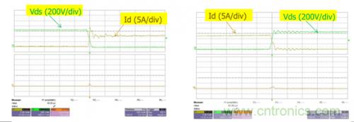 從圖4的仿真模型中可以看出,在開通和關斷的交越區域非常小,因此損耗非常小,CREE的SiC產品可以實現在通訊電源上的高效、低成本、小體積以及高可靠性的要求。