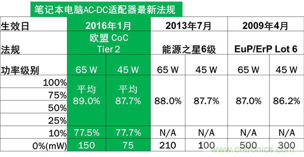 表1. AC-DC 適配器能效法規一覽