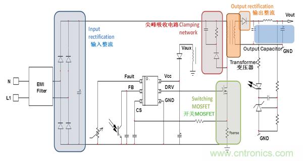 圖2. 準諧振反激電源的損耗分布