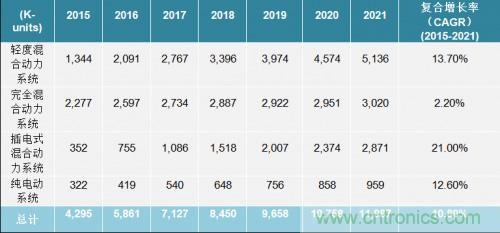 表2顯示出HEV/EV市場的穩定增長以及汽車市場對電動解決方案的興趣。隨著需求的增加,原始設備制造商將繼續尋找提升這些車輛性能,并同時增加使用內置診斷、保護和監控設備增加系統自診斷容易性的方法。