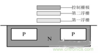 EEPROM基本存儲單元電路的工作原理如圖所示。與EPROM相似,它是在EPROM基本單元電路的浮空柵極的上面再生成一個浮空柵,前者稱為第一級浮空柵,后者稱為第二級浮空柵。可給第二級浮空柵引出一個電極,使第二級浮空柵極接某一電壓VG。若VG為正電壓,第一浮空柵極與漏極之間產生隧道效應,使電子注入第一浮空柵極,即編程寫入。若使VG為負電壓,強使第一浮空柵極的電子散失,即擦除。擦除后可重新寫入。