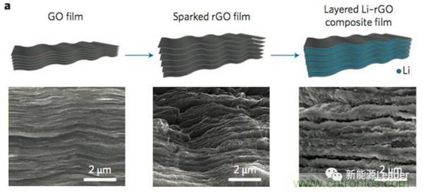金屬鋰的另一大問題就是體積變化大,導致界面波動大,容易破壞界面結構,目前比較好的解決辦法主要有氧化石墨烯載體(如下圖所示),誘導沉積等方法,利用載體內部的空間儲存金屬鋰,從而最大限度的減少在充放電過程中電極的體積變化「1」。