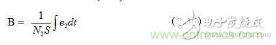 我們?cè)賮?lái)看怎樣對(duì)磁通密度B進(jìn)行顯示。根據(jù)法拉第電磁感應(yīng)定律,在交變磁場(chǎng)的作用下,變壓器T2次級(jí)線(xiàn)圈中感應(yīng)產(chǎn)生的電動(dòng)勢(shì)e2大小為: