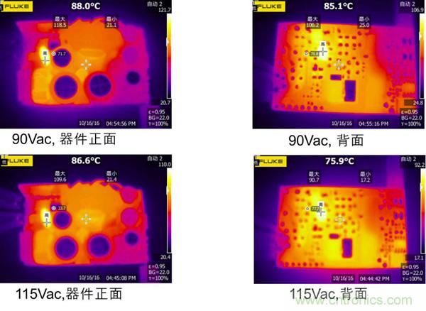 我們在90 Vac、115 Vac、230 Vac、264 Vac 條件下,測得該方案于5 V輸出(電纜未插入)的待機功耗都低于27 mW,在評估板端測得在115 Vac和230 Vac的條件下,20 V/2.25 A輸出的平均能效超過90%。