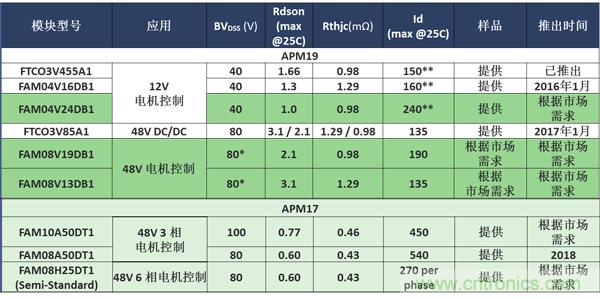 表4:安森美半導體標準的APM19和APM17汽車模塊陣容