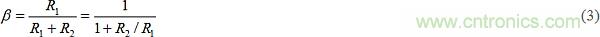 Ri(單位為V/A或歐姆)是電流-電壓轉換的整體增益。為感測輸出電壓VO,該電路使用分壓器R1-R2產生電壓ßVO,其中: