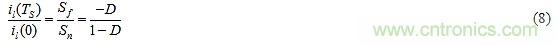 (a)il(TS)的極性與il(0)的極性相反; (b)對于D < 0.5,在足夠的周期數之后,其幅值將減小直至消失;但對于D>0.5,將趨于從一個周期增加到下一個周期,導致前述的亞諧波不穩定。