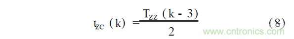 式中, TZZ ( k - 1)為第k - 1次過零點到第k次過零點的時間; tZC ( k)為第k次過零點到第k次換相點的延遲時間.