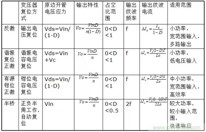 諧振復位正激變換器優缺點