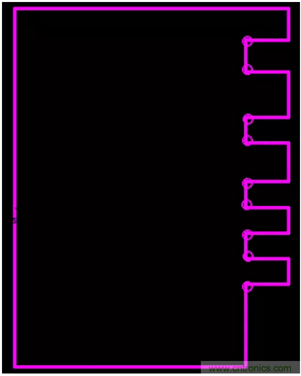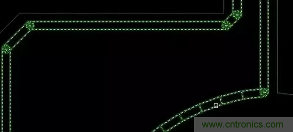 16.畫小板時(shí),在小板引腳的90度拐角處增加一個(gè)圓形鉆孔。