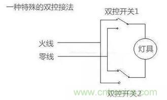 雙控開關(guān)有很多種接線方式,如果電工采用了下面這種接線方法,就會關(guān)燈后發(fā)微光。