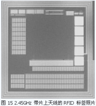 本文所介紹的一些RFID 標簽的主要電路,大部分已經經過了流片的驗證。圖14 是我們所設計的一款RFID 標簽芯片。芯片面積0.7mm×1.0mm,在36dBm EIRP 下,可在6 米處讀出標簽卡號。圖15 是2.45GHz 帶有片上天線設計的RFID 標簽。在42dBm EIRP 下,該芯片可在40cm處產生響應。