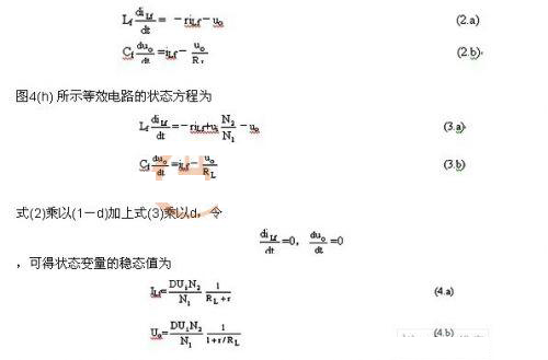 由于開關頻率Fs遠大于輸出LC濾波器的截止頻率和輸出電壓頻率,在一個開關周期內輸出電壓uo可看成恒定量。圖4(g)所示等效電路的狀態方程為