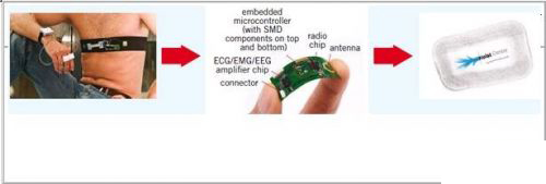 IMEC和霍爾斯特中心正在開發(fā)一款心電圖綁帶,該產品像運動員所用的傳統(tǒng)心臟監(jiān)測帶一樣使用。這款帶子不僅能監(jiān)測心跳,還可以記錄和傳送完整的心電圖。該設備可供有心臟病的戶外活動愛好者非常方便地使用,或在競技活動中使用(這款帶子已經在布魯塞爾馬拉松里進行過測試)。目的難題在于要將系統(tǒng)小型化和實現(xiàn)足夠水平的自立性。根據應用的不同,可能是要能使用幾天或永久性使用。最終目標是要將這款電子心臟專家集成到一個小盒子中,而這個小盒子要能附著在一條帶子上(圖4),或者能嵌入到一件襯衫里則更好。