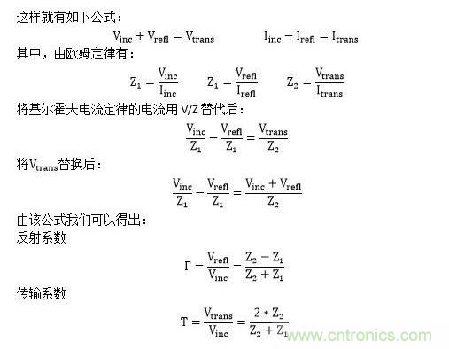 當信號穿越阻抗不連續的點時,會產生反射電壓與電流,從而使得分界面兩邊的電壓和電流相等(基爾霍夫定律)。