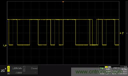 如下圖所示,設置了欠幅觸發(fā)及普通觸發(fā)后,欠幅脈沖信號被觸發(fā),穩(wěn)定的顯示在屏幕上。