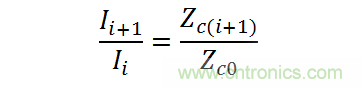 圖中Yo為連接功分網絡的串饋線陣等效導納,Zci為各阻抗變換段的特性阻抗,Zco為饋線的特性阻抗;串饋網絡輸出端口激勵電流與阻抗有如下的關系[4]