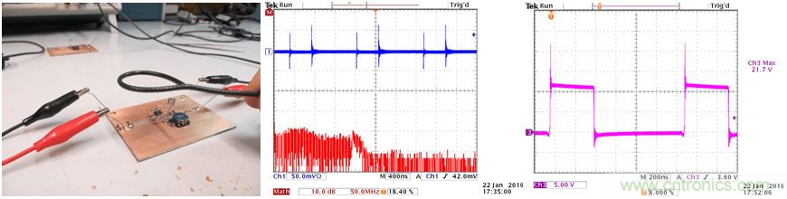 在此實驗中,我們使用雙面PCB,輸入電容的放置位置如上面的實驗2一樣,這樣的配置可以在輸入回路中引入比較明顯的輻射。