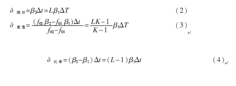 為簡化數學運算,只考慮存在一個干擾因素的情況,參考量f1與被測量f2可以分別寫作:f1=f01(1+β1Δt)和