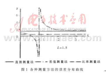 圖1表示取L=1.5時相對誤差隨元件值的分布情況。可以看出,比率測量法在很寬的測量范圍內均具有良好的抗干擾能力。當存在多個影響因素或者在分析由上述方法組合成的測量裝置時,可根據疊加原理按系統誤差的理論綜合評定其精度。