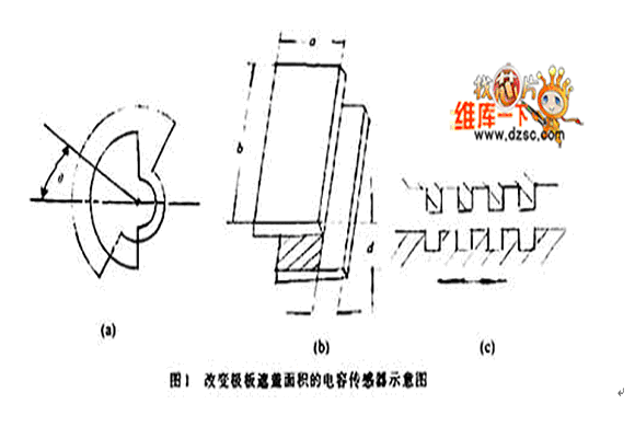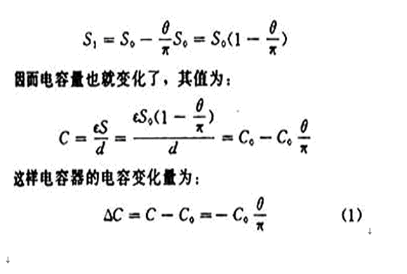 圖1是3種這類傳感器的原理圖,圖1(a)中是利用角位移來改變電容器極板遮蓋面積。假定當(dāng)2塊極板完全遮蓋時(shí)的面積為S0,兩極板間的距離為d,極板間介質(zhì)的介電常數(shù)為ε。當(dāng)忽略邊緣效應(yīng)時(shí),該電容器的電容量為: