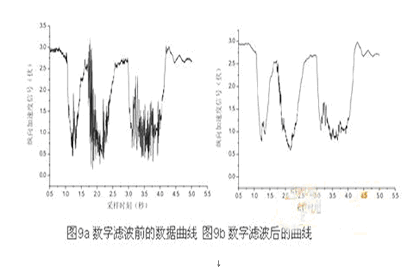 調整圖8中各個阻容元件的參數,即可設置濾波截止頻率和延時大小。汽車運行過程中,在較好路面上行駛時,由于信號較好,延時盡量要小,而在顛簸路面上行駛,則希望濾波效果要好。但是由于硬件濾波的頻率特性一經設計完畢,無法實時修改,故需要在軟件中設計數字濾波環節。數字濾波常用的有維納濾波器、卡爾曼濾波器、線性預測器、自適用濾波器等。在這里選用計算量小、實時性能好的一階低通濾波。