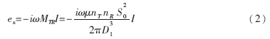 式中,nT和nR分別為發(fā)射線圈和接收線圈的匝數(shù);S0為線圈的橫截面積;I為發(fā)射線圈中的電流;μ為介質(zhì)磁導(dǎo)率; D1為T(mén)、R兩線圈之間的距離;MTR為兩線圈互感系數(shù)。所以由此而產(chǎn)生的感應(yīng)電動(dòng)勢(shì)為: