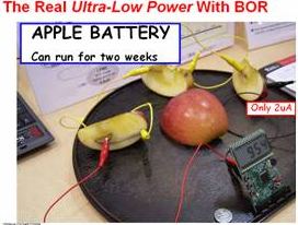 低功耗:便攜化就意味著產品將對待機時間提出更多需求。在CMET2009上,來自TI的 MSP430微控制器業務發展經歷刁勇展示了MSP430家族令人吃驚的功耗特征:僅僅用三小塊蘋果制成的生物電池就可以帶動MSP430正常工作一到兩個星期!