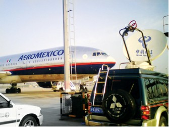圖2:中國電信上海公司緊急在浦東機(jī)場遠(yuǎn)機(jī)位安裝3G無線全球眼